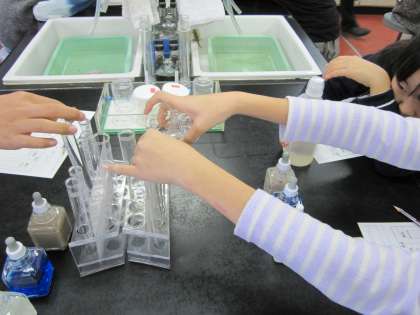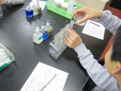 「水の汚れと自然の力」です。河川の汚れと海水の関係についての実験を通して,私たちのこれからの生活について考えました。