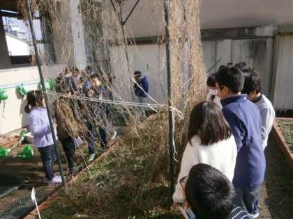 年間通じてツルレイシや,校内にある植物の成長を見守ってきた4年生。