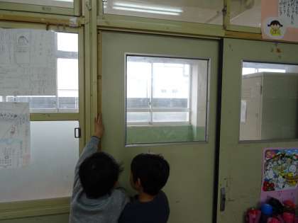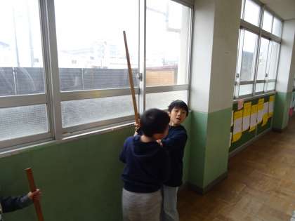 大きな定規を使って,教室の色々な場所を測りました。