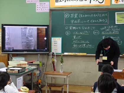 生茶と加工した茶葉を比べて,宇治茶についての学習の見通しをもちました。