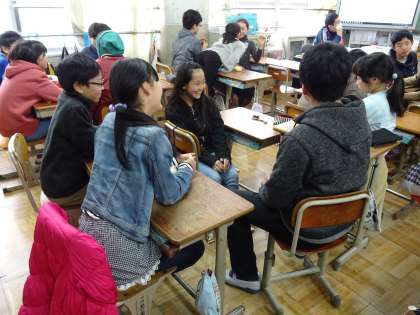 学級目標についてふり返りをしました。グループで,たがいに意見を出し合いました。