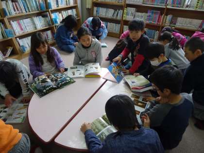 自分が調べる課題を見つけるために,学校図書館で本を探しました。