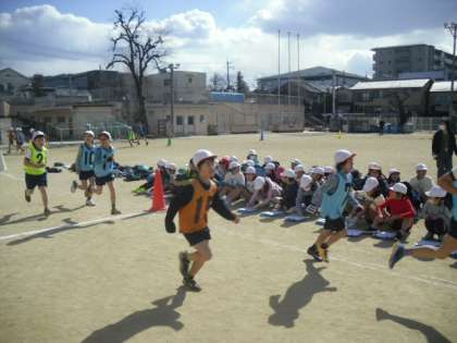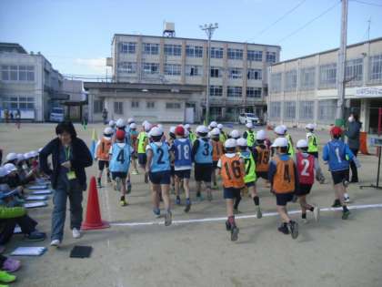 本日,運動場で持久走記録会を行いました。記録会に向けて,3年生は体育のペース走で学年体育を行って練習を積んできました。子どもたちも記録に向けてはつらつと走っていました。写真は男子の様子です。