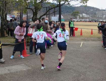 みんなの思いが込められたたすきを受け取り,懸命に走ります。