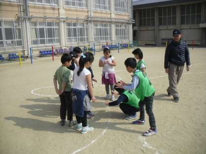 今日は,学校運営協議会(ふれあい委員会)のみなさまに「おそとであそぼう!みんなであそぼう!」を企画して頂きました。