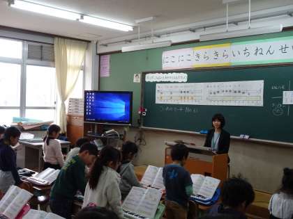 歌と楽器の音を合わせて,楽しく演奏しました。