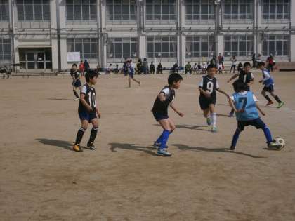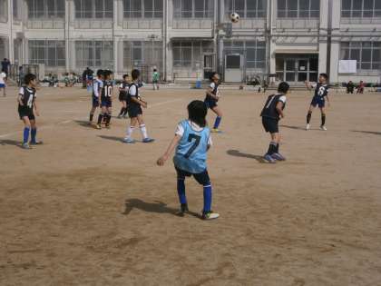 久我の杜小学校の運動場をお借りして,サッカー部の交流会が行われました。