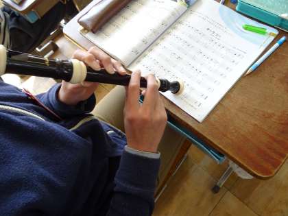 TV画面や楽譜を見て,一生懸命に演奏できていました。
