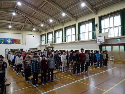 国歌・第一校歌の斉唱です。