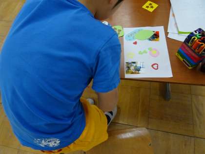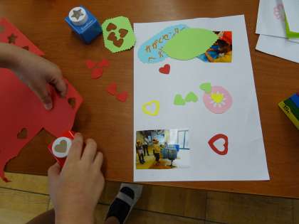型を取って紙を切り抜き,飾り付けをしました。