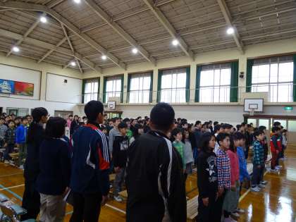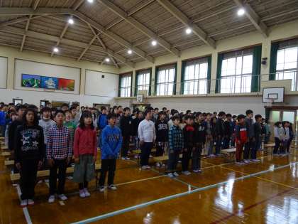 国歌・第一校歌の斉唱です。