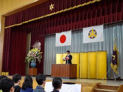 学校長式辞です。中には,うなずきながら聞く子どももいました。
