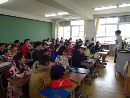 6年生の教室では,最後のお別れが行われていました。