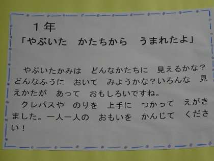 「やぶいた かたちから うまれたよ」です。