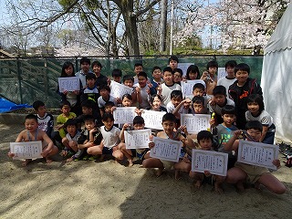 子どもたちは精いっぱい自分の相撲を取りきり,全部門で入賞を果たすことができました。最後に,ふしみ児童クラブの部員が記念撮影をしました。応援ありがとうございました。