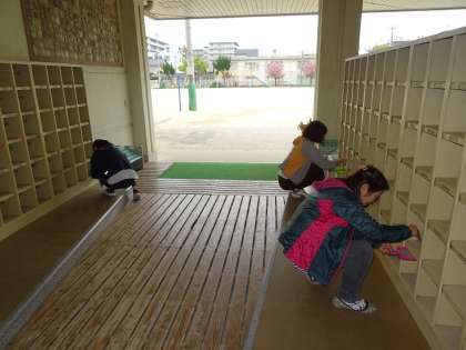 入学式に向けて,教職員で準備を行いました。新入学児童の笑顔を思い浮かべながら,丁寧に取り組みました。