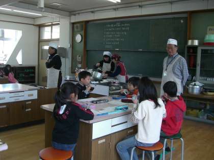 子供たちが育てた大根を,食育指導員さんの作っただしで煮て,大根葉も油炒めにして下さいました。だしで煮た大根を,子供たちはとても喜んで食べていました。これからも「食」に興味を持ってくれたらいいなと思います。