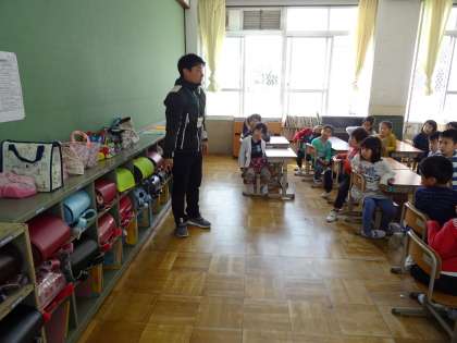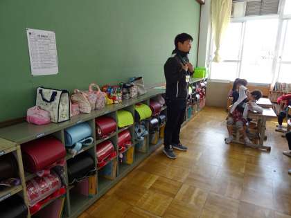ランドセルの置き方や共用ロッカーの使い方を確認しました。