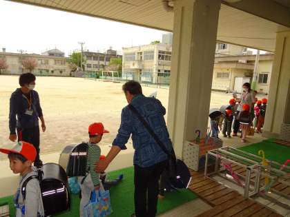 児童館の先生も集団下校のお迎えに来てくださっています。