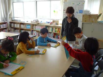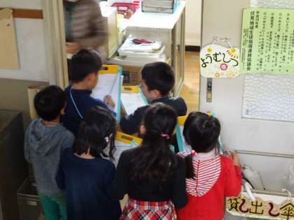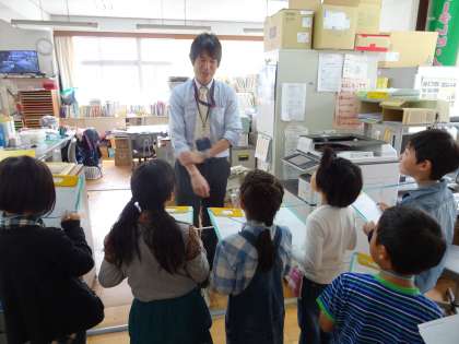 学校探検で地域の方や教職員にインタビューをしました。それぞれの部屋や場所で,ひみつを調べました。