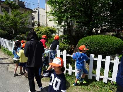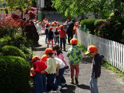 校庭や観察池周辺で「はるみつけ」をしました。合図があると,素早く集合できていました。