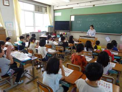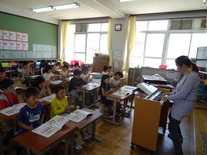 先生の伴奏に合わせて,「こいぬのビンゴ」を楽しく歌いました。