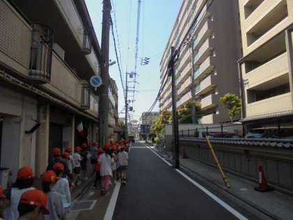 4月20日に社会科の学習で町探検に行ってきました。2年生の町探検とは違い,地図を持って,方角を意識しながら行きました。今回は板橋小学校の南方面を探りに行きました。