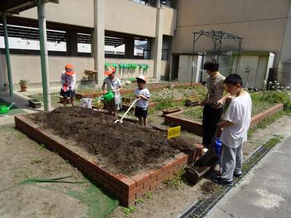花壇整備をして,草花や植物を植えられるようにしました。