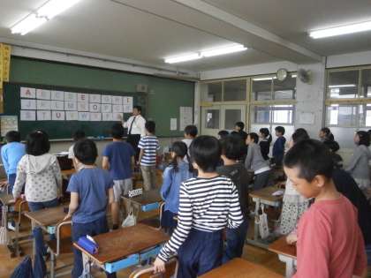 アルファベットをチャンツで歌い,友だちと順番に言い合う活動もしました。