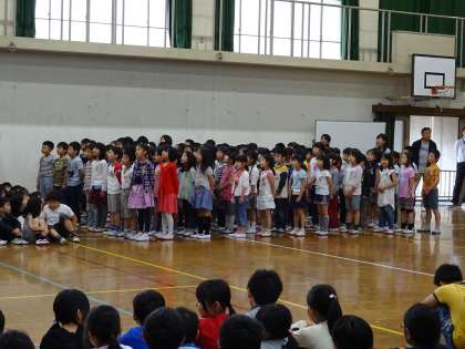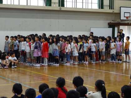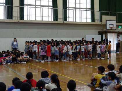 3年生のプレゼントです。明るく元気いっぱいの歌声でした。