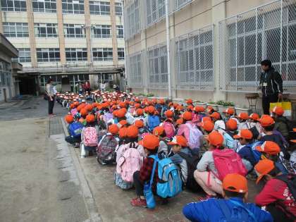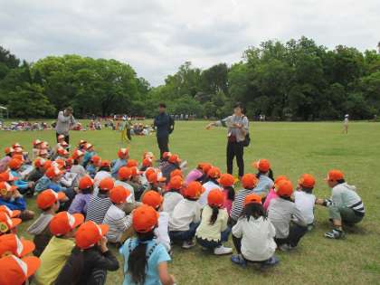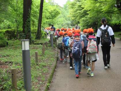 朝方は少し,小雨が降っていましたが,出発前には止み,お昼間には太陽の日も射して本当によい天気でした。 今回の遠足は1年生との合同でした。2年生はきちんと整列ができとてもかっこいい姿を見せていました。
