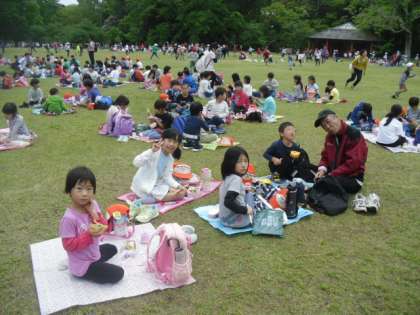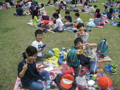 お昼間は,ぽかぽか陽気の中,おいしいお弁当をグループで食べました♪