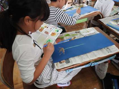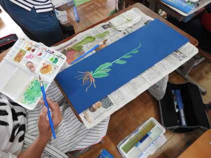 根の伸び方,葉の大きさ・色・形など,じっくり見て,絵の具でかきあげました。