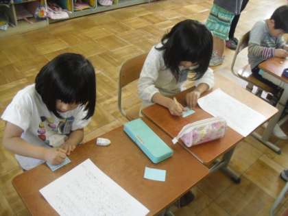 それぞれの「今週のニュース新聞」を読みあう時間でした。読んだ後は,感想をふせんに書いてコメントを残しました。