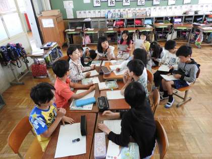 司会や提案者などの役割を理解し,目的に向かって,互いの考えの共通点や相違点を考えながら話し合うことができるように学習をしています。