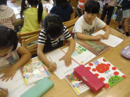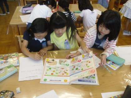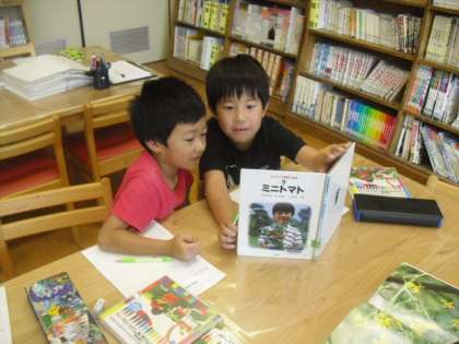 図書室の図鑑や科学読み物を使い,野菜の育て方を調べました。