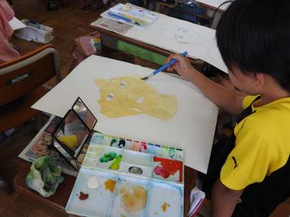 図画工作科では,自分の顔をかいています。