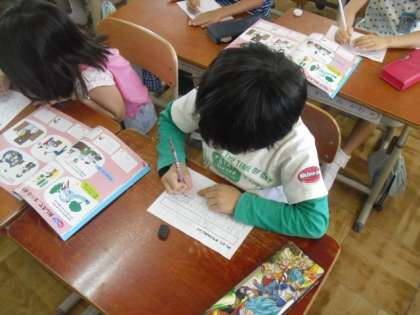 わたしたちが暮らす,板橋校区のお気に入りを考えました。たくさんありすぎて,一つだけ選ぶことにとても悩んでいる様子でした。
