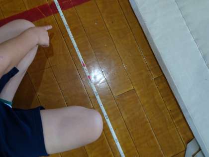 立ち幅跳びです。瞬発力をたしかめました。