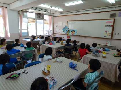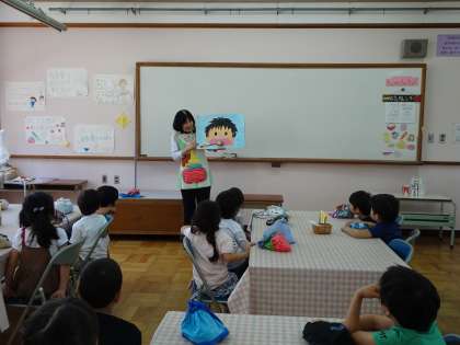 1年生にとって,初めての食に関する指導です。紙芝居形式で学習を進めました。