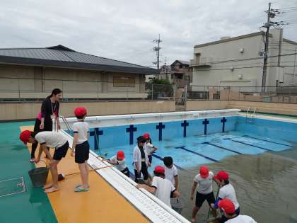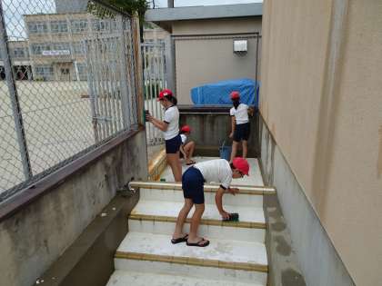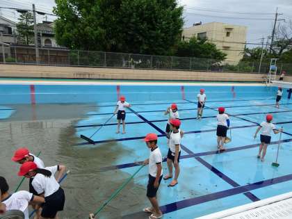 6年生がプール清掃をしました。6月からの学習に向けて,丁寧に掃除をしました。