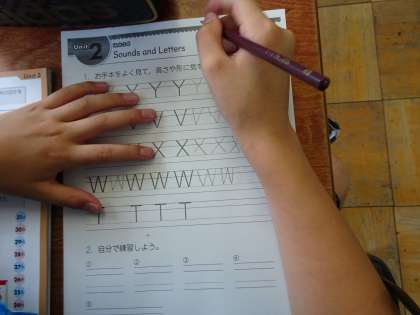 アルファベットを書いて,練習しました。