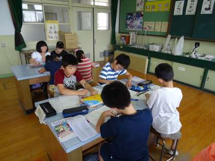 4・5年生の土曜学習です。先生に質問する姿も見られました。