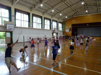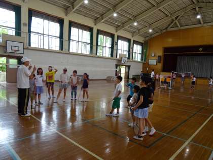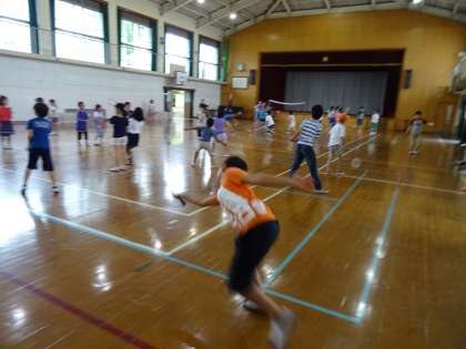 学校運営協議会のみなさんのご協力により,バドミントンに親しみました。チームに分かれて,ラケットの使い方を教わりました。