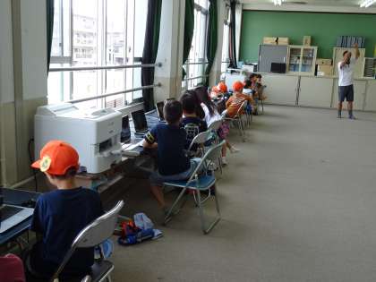 多数の応募者から当選した子どもたちがマウスとキーボードを使って,基本操作を学習しました。
