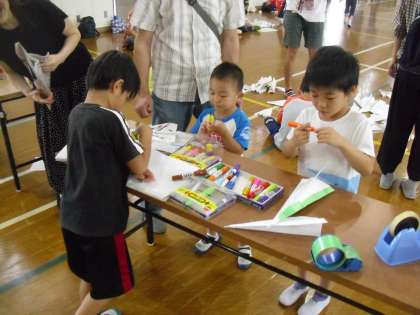 おやじの会「みんな集まれ 紙飛行機教室」