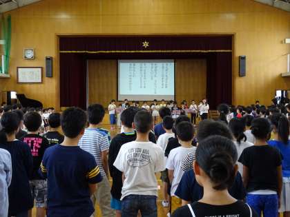 音楽委員会の児童のリコーダー演奏に合わせて,歌いました。