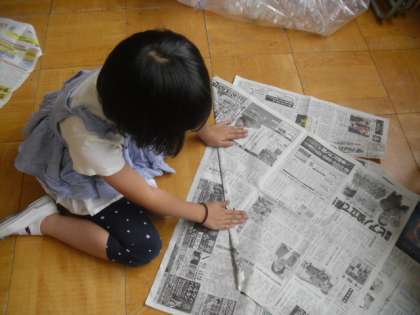 新聞紙を使った学習をしました。丸めたり,破いたり,はりつけたり新聞紙を自由に使って活動しました。