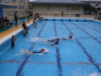 背浮き,だるま浮きに続いて,新しい泳法にチャレンジしました。