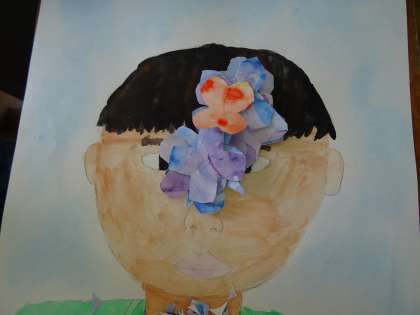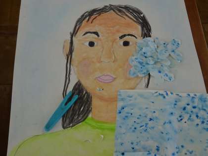 いよいよあじさいを貼り付けていきます。色鮮やかな作品が出来上がりつつあります。